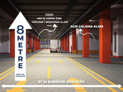 8 AÇIK ÇALIŞMA ALANI BRÜT KAT YÜKSEKLİĞİ 27 M KORİDOR GENİŞLİĞİ