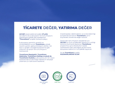 İş dünyasına verimlilik, esneklik ve AKYAPI’nın ticari projelerdeki deneyimini ve bilgi